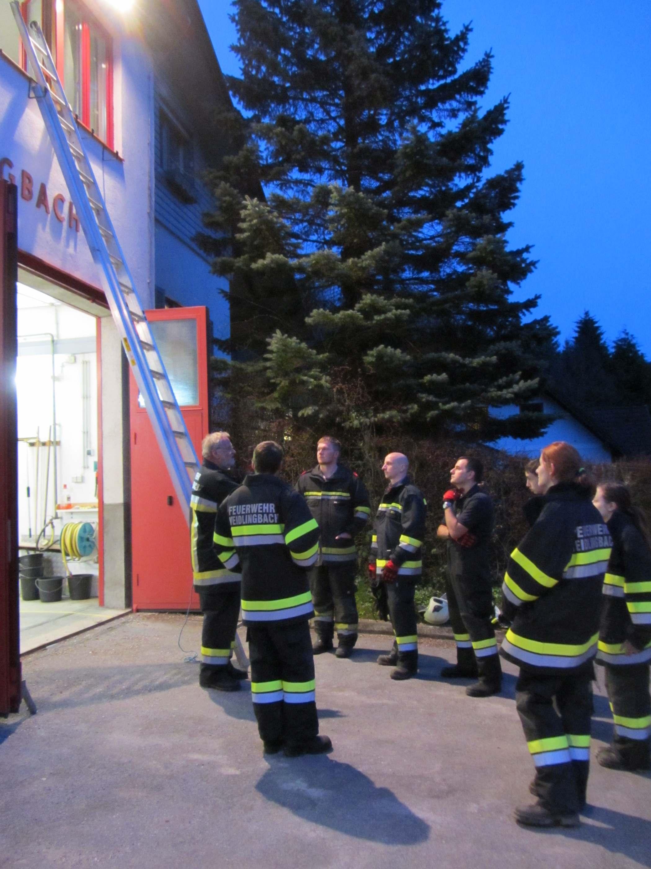 24 Kameraden und Kameradinnen übten das richtige Auf- und Abbauen von Leitern sowie das richtige Klettern und Sichern.