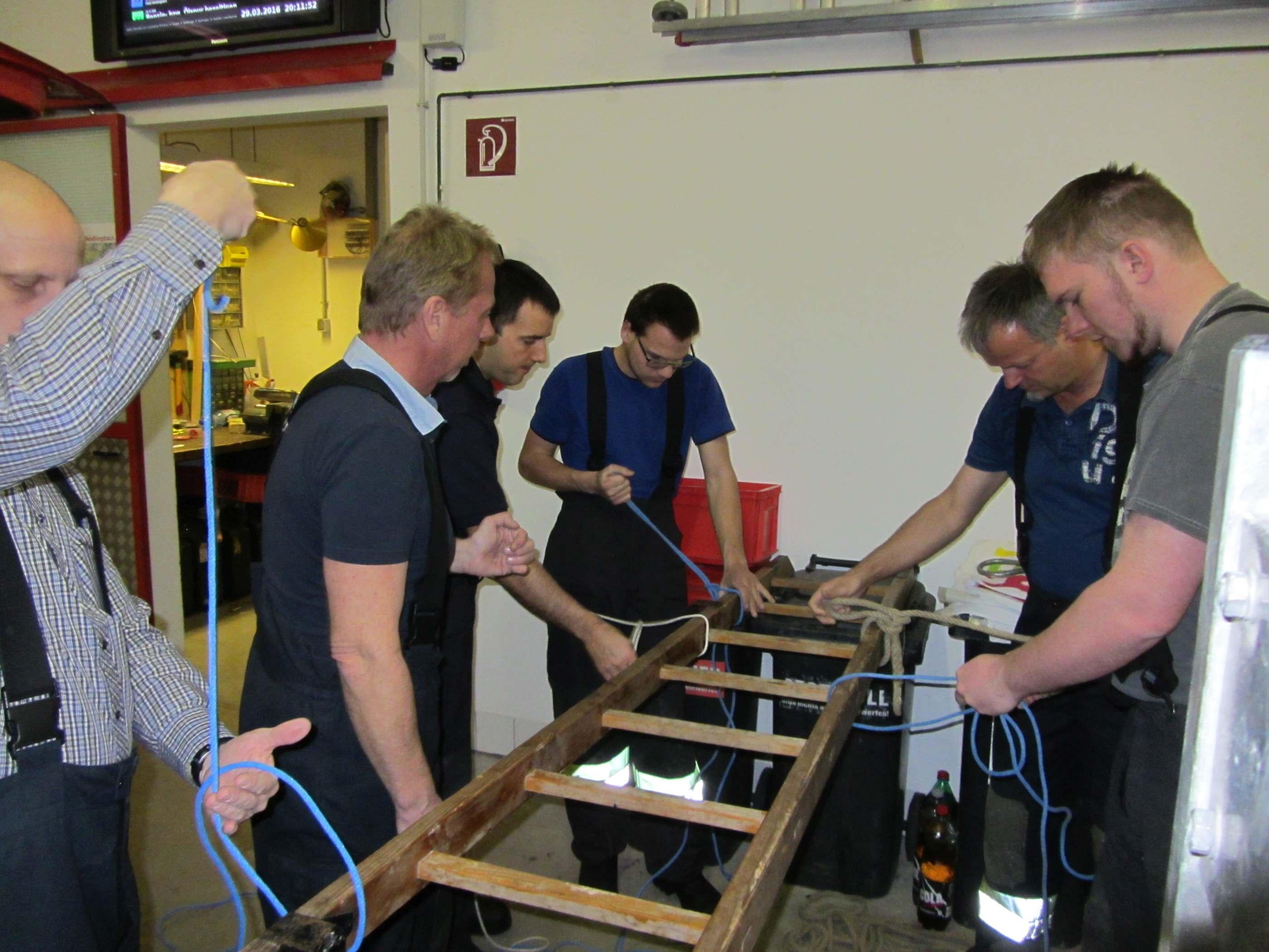 Im Rahmen unseres Übungsplans wurde am 29.03.2016 das Thema "Leitern und Knoten" durchgenommen.