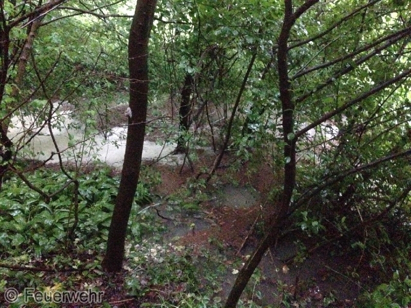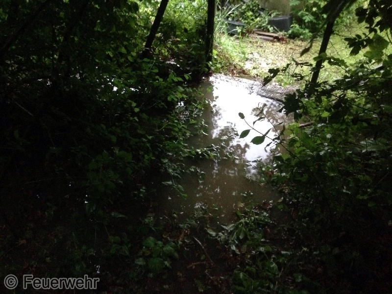 Kaum war dieser Einsatz beendet, wurden die Weidlingbacher Einsatzkräfte von der BAZ Stockerau über Funk zu einem Folgeeinsatz gerufen. Bei einem Bachstück kam es zu einer Verklausung, welche zu einer Überschwemmung des Gartens und des Kellers eines angrenzenden Hauses in der Steinrieglstraße führte. Wieder übernahm die Mannschaft des RLFAs den Folgeeinsatz, während die Besatzung des VRFAs noch mit dem ersten Einsatz beschäftigt war. Zwei Feuerwehrmänner, ausgerüstet mit Hochwasserhosen, Krampen und Feuerwehrhaken konnten die Verklausung lösen und ein weiteres Überfluten des Grundstückes verhindern. Nachdem die Wasserzufuhr unterbrochen war, konnten die betroffenen Bereiche mittels UW-Pumpen ausgepumpt werden.