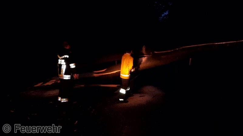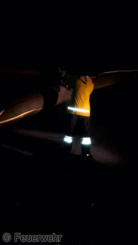 Während die Arbeiten noch in vollem Gange waren, wurde der Einsatzleiter per Funk über einen Sturmschaden in der Weidlingbachstraße, zwischen Steinriegl und Weidlingbach informiert. Daraufhin wurde die Mannschaft des Rüstlöschfahrzeuges zu der neuen Einsatzadresse entsandt. Am Einsatzort angekommen, wurde ein Baum der quer über der Straße lag, vorgefunden. Nachdem der Baum mit einer Kettensäge zerkleinert wurde, konnte die Straße gesäubert und für den Verkehr wieder freigemacht werden.