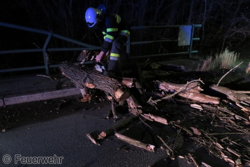 Am 02.12.2016, wurde die Feuerwehr Weidlingbach, kurz nach Mitternacht, zu einem T1 - Sturmschaden in die Steinrieglstraße gerufen. Aufgrund des starken Sturmes knickte ein Baum um und fiel auf die Straße.
