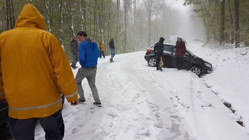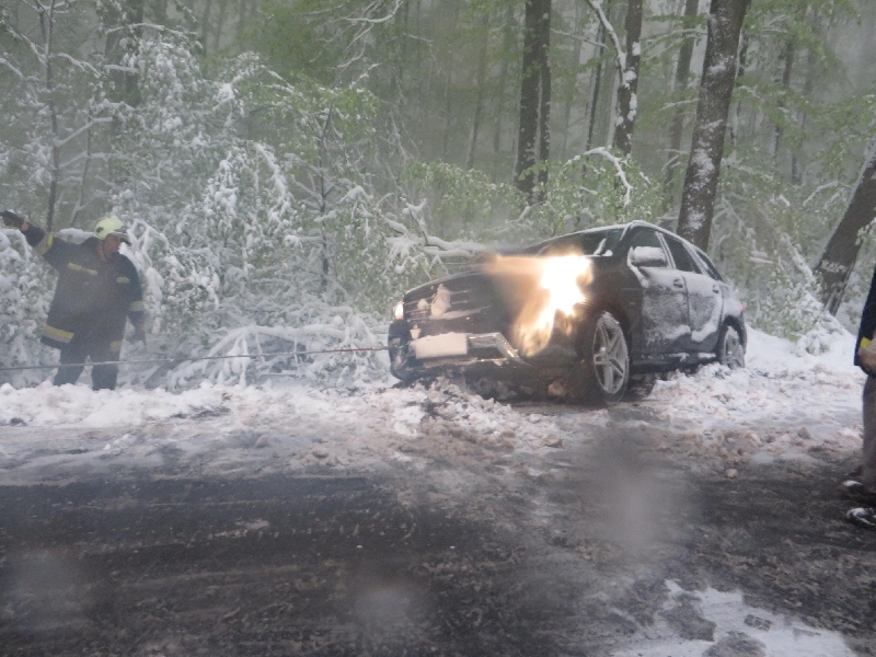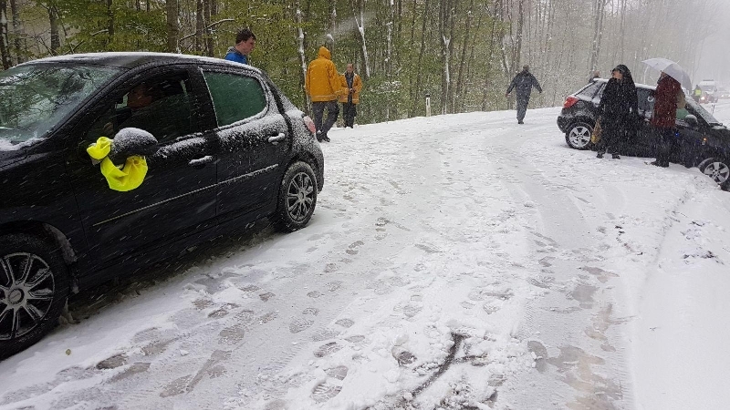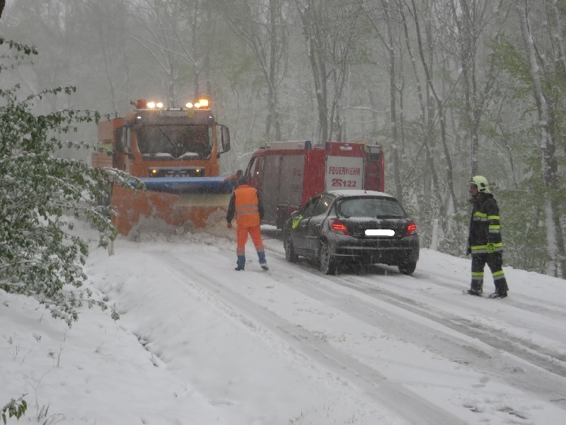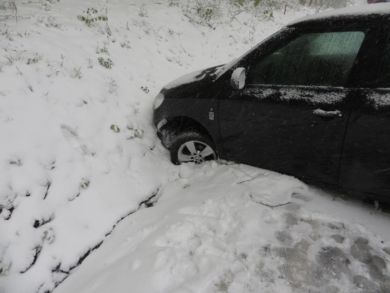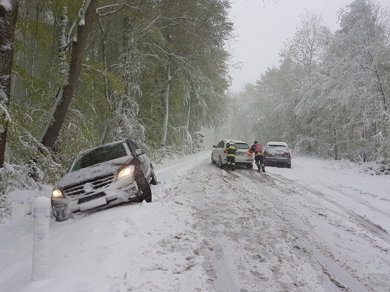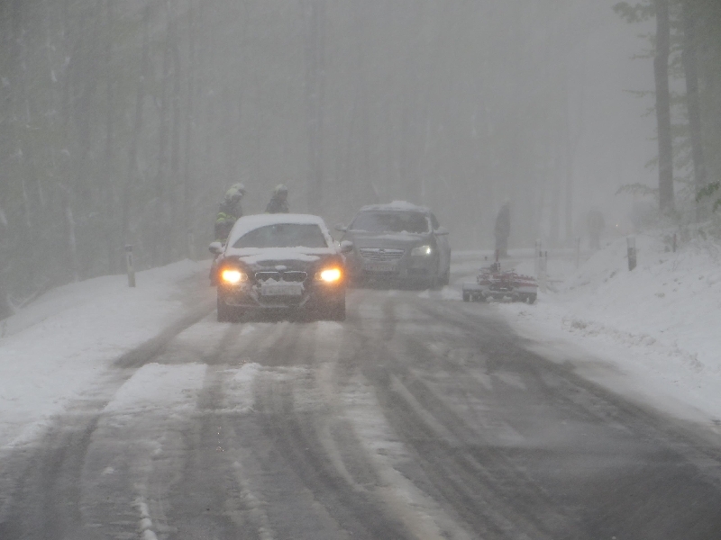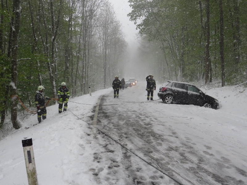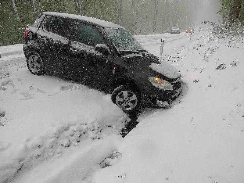 Aufgrund der winterlichen Fahrverhältnisse und der Tatsache, dass viele Autos schon mit Sommerreifen ausgerüstet waren, endeten 5 Autos im Straßengraben und dutzende Fahrzeuge blieben im Schnee stecken.