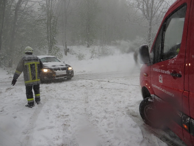 Insgesamt 7 Einsätze, davon 5 Fahrzeugbergungen aus dem Straßengraben, 2 Sturmschäden und dutzende Hilfeleistungen bei stecken gebliebenen Fahrzeugen, galt es zu bewältigen.