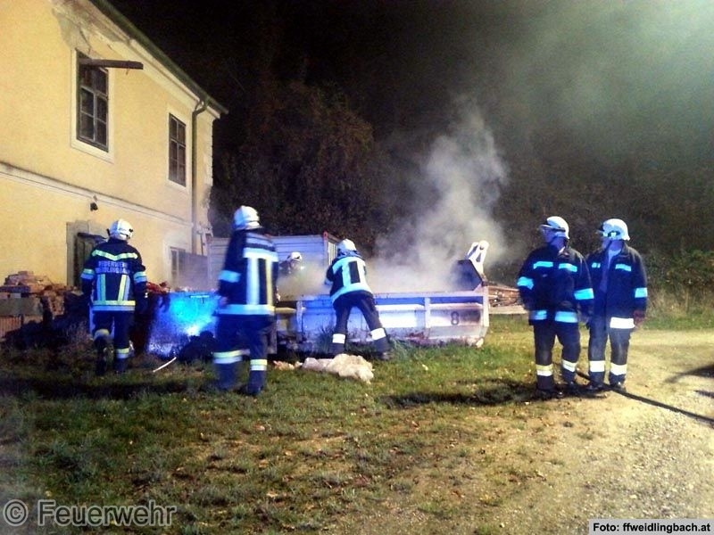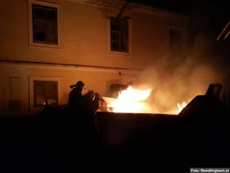 Am 1. November 2015, um 21.56 Uhr, wurde die Feuerwehr Weidlingbach zu einem Müllbehälterbrand auf der Höhe Steinrieglstraße 92 gerufen. Bei der Ankunft wurde vom zuerst eintreffenden Fahrzeug ein Container mit Bauschutt in Vollbrand vorgefunden. Als Erstmaßnahme wurde das Hochdruckrohr zum Einsatz gebracht. Nachdem die Wasserversorgung gewährleistet war, wurde zusätzlich mit einem C-Rohr der brennende Container gelöscht.