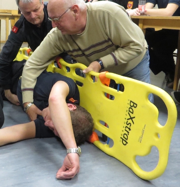 Ende Jänner wurde eine Erste Hilfe Schulung für die Kameradinnen und Kameraden abgehalten. Mit Karl Scheichenstein vom Roten Kreuz wurden die für das Einsatzgebiet relevanten Hilfsmaßnahmen besprochen und geübt. Dazu zählen das richtige Abnehmen eines Motorradhelms, die Handhabung der verschiedenen Tragen, die Rettung aus einem PKW, und das Anlegen einer Cervicalstütze.