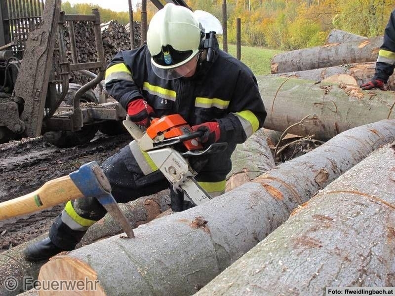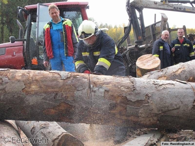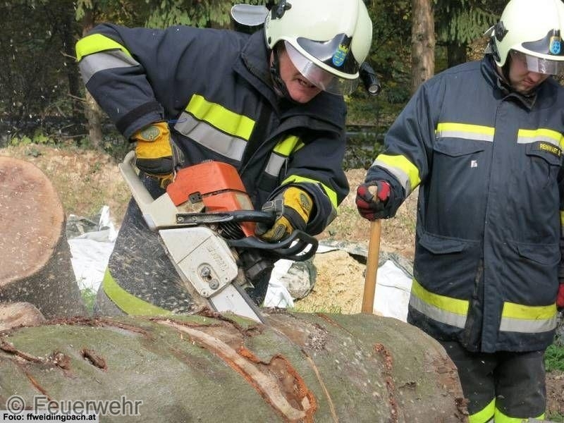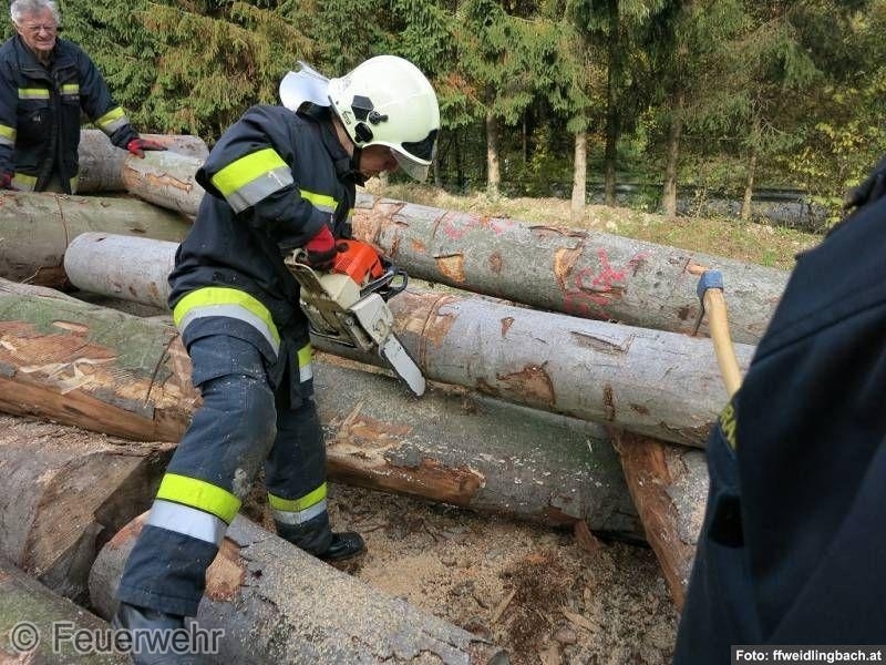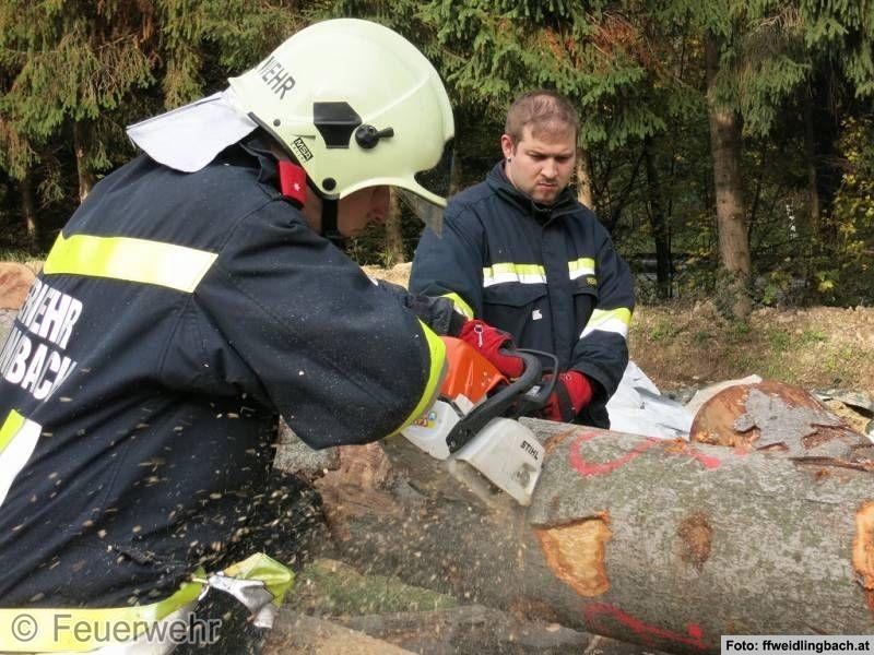 Am Sonntag, 25. Oktober 2015, übte die FF Weidlingbach das korrekte und vor allem sichere Schneiden von Bäumen, da das zu einem häufigen Einsatzszenario im zuständigen Einsatzbereich zählt, wenn nach Sturmschäden oder im Winter umgestürzte Bäume den Straßenverkehr blockieren. Ein auch zur Feuerwehr gehörender Landwirt schulte die anderen Kameraden im richtigen Umgang mit den Motorkettensägen und wies auf diverse Gefahrenpotentiale während der praktischen Übung hin.
