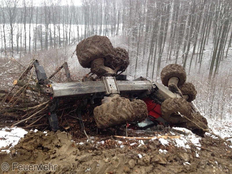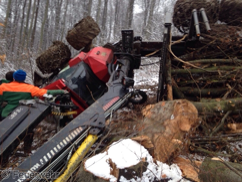 Am Einsatzort angekommen stellte sich heraus, dass es sich um eine Arbeitsmaschine mit Holzanhänger handelte, die im unwegsamen Gelände umgekippt war. Wetterbedingt war der Boden extrem aufgeweicht, sodass eine sichere Bergung unmöglich erschien! Da nur sehr wenig Betriebsmittel ausgeflossen ist und somit keine Gefahr in Verzug war, rückte die Feuerwehr Weidlingbach nach ca. 1 Stunde wieder ins Feuerwehrhaus ein. Die Bergung der Arbeitsmaschine übernimmt eine Spezialfirma.